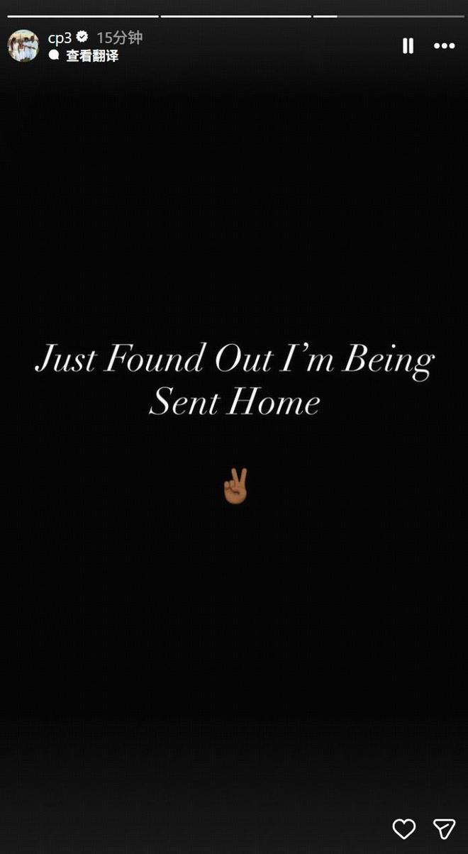 保罗在社媒发文:“我刚知道,我要被送回家了”。目前快船全队正在亚特兰大,明日他们将对阵老鹰。当地时间是凌晨2点多。