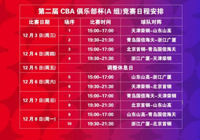 第二届CBA俱乐部杯赛区抽签结果已于昨日揭晓,备受关注的长沙赛区小组赛将于12月3日-8日在贺龙体育馆拉开战幕。北京首钢与青岛国信海天、天津荣钢、浙江广厦、山东山高五支劲旅齐聚A组,即将展开激烈角逐。