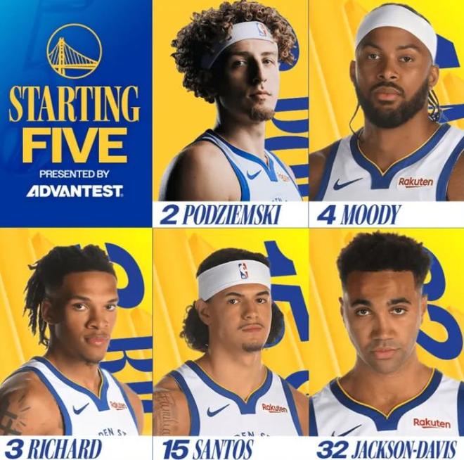 11月20日,勇士公布首发名单,是穆迪,波杰姆斯基,理查德,戴维斯和桑托斯,这些人过去都是替补。
