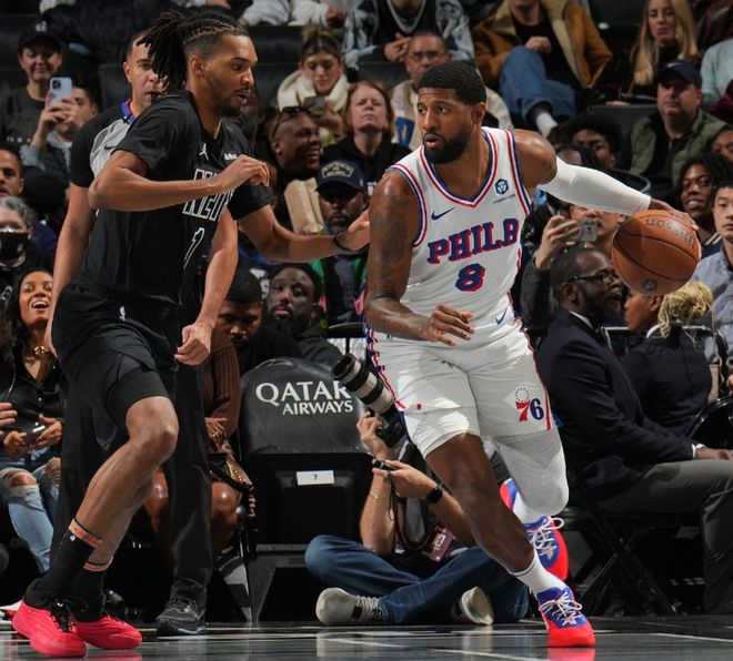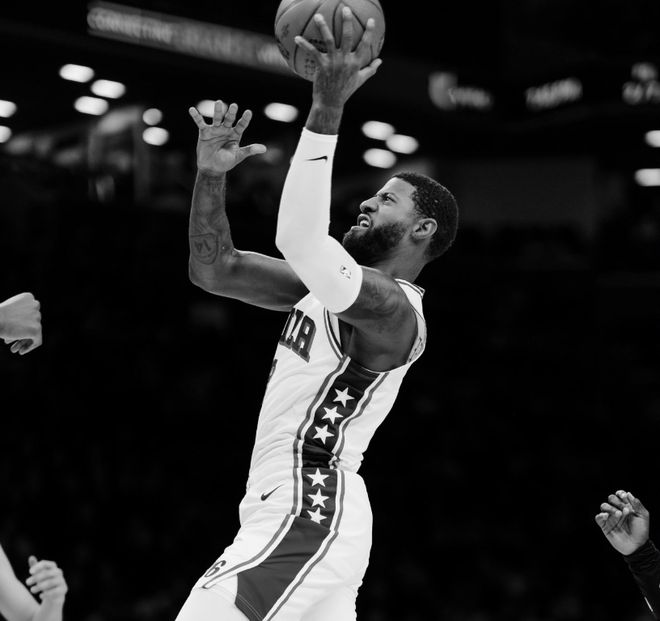 费城记者盛赞乔治半场14分、魔仙哥半场10分很出色,乔治半场8中6拿14分是目前半场得分新高。