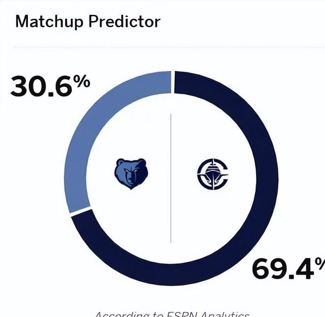 今天NBA小组赛孟菲斯灰熊客场挑战洛杉矶的快船,而比赛开始之前根据ESPN预测快船胜率69.4%,灰熊30.6%。