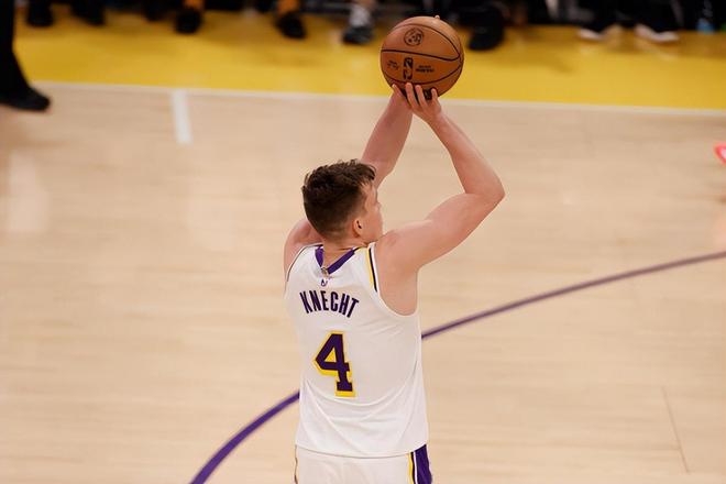 本场比赛中,湖人的替补侧翼新星道尔顿-克内克特(Dalton Knecht)难得得到了进入轮换阵容的机会,然而他的表现却依然没有取得实质性的提升,他也依然没有找到自己的手感。克内克特全场出场17分25秒,投篮4中1,三分线外3中1,罚球2中1,得到了4分1篮板2助攻1盖帽的数据,还有2次犯规,正负值为+13。克内克特在进攻端依然是没有办法找到自己的感觉,他的进攻效率依然不佳,得分能力和投射能力依然没有完全体现出来。克内克特在防守端的能力本来就比较一般,他也没有办法在防守端起到更大的作用。克内克特在本场比赛中依然没有起到很好的效果,他的表现与球队的胜利也没有什么太大的关系。