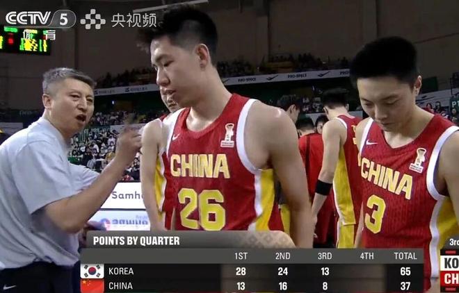 郭士强下半场比赛使用了祖传的三后卫。高诗岩命中了中国男篮第二个三分球,程帅澎内切外投得分,李贤重三分球命中后三罚全中,何允基两罚都有,比赛打得比较胶着。李贤重中远投连续命中,李承炫和何允基也连续中投也有,韩国男篮连得9分将优势扩大到30分以上以69-37领先。胡金秋篮下连续吃饼得分止血,程帅澎连续三分球命中,中国男篮打出一波10-2的小高潮缩小分差。李政玹里突外投得手,胡金秋篮下打成2+1后补篮得分,李元锡连续两罚全中。第三节比赛结束,韩国男篮以80-52领先。