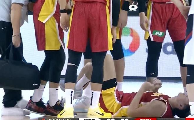 第四节比赛刚开始程帅澎就因崴脚下场,中国男篮在这节比赛中单节比分终于超越对手,只可惜还是太晚了。