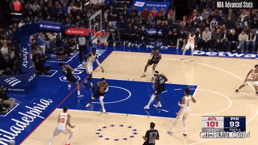 不止为他的进步,还为他刚满25岁的年纪,已经得撑着费城这个乱七八糟的家业,依然在努力前进。这个城市有那么多巨星,最后靠一个21号新秀,一次次加速冲向对面的巨人来撑场。