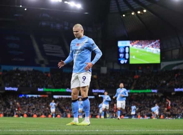 伯恩茅斯随即也立马做出了回应,第26分钟,斯科特开出角球,多纳鲁马出击被干扰后失误,泰勒-亚当斯门前混战扫射入网,1:1!第33分钟,谢尔基中圈再送精准挑传,哈兰德又一次成功反越位跑位形成单刀并过掉出击的彼得罗维奇后推射完成梅开二度,2:1!哈兰德本赛季英超前10场已打入13球,历史同期仅次于22-23赛季的自己;同时英超98球超越阿德巴约,升至英超历史射手榜第35位。